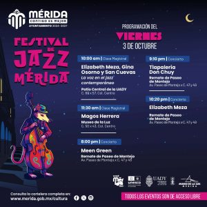 Todas las actividades son gratuitas y abiertas al público. El programa completo del Festival de Jazz Mérida 2025 se puede consultar en www.merida.gob.mx/cultura para disfrutar un nuevo concepto en familia durante estos días.