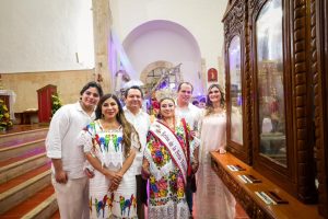 En compañía de su esposa, la Presidenta Honoraria del Sistema para el Desarrollo Integral de la Familia (DIF) Yucatán, Mtra. Wendy Méndez Naal, el titular del Ejecutivo presenció la homilía oficiada por el arzobispo de Yucatán, Gustavo Rodríguez Vega, en la iglesia dedicada a los Tres Santos Reyes, ubicada en el centro de la cabecera municipal, donde convivió con miles de feligreses que se dieron cita para participar en esta tradición.