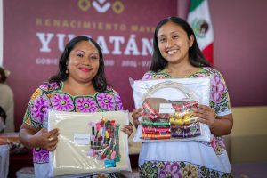 “Hoy, con el programa Reactívate, beneficiamos a 1,266 artesanas y artesanos de 41 municipios, con apoyos para el bordado a mano, bordado a máquina, urdido de hamacas, fibras de henequén, herramientas para madera, así como para fibras duras. Son insumos y herramientas que fortalecen el trabajo y ayudan a mejorar la elaboración y comercialización de sus piezas”, explicó.