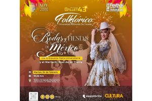 La Universidad Autónoma de Yucatán (UADY) anunció que con motivo de la celebración del 43 aniversario de su Ballet Folklórico se ofrecerá el espectáculo “Bodas y Fiestas de México”, el próximo martes 24 de febrero, a las 19:30 horas, en el Teatro Armando Manzanero.