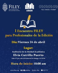 En el marco del Día Mundial del Libro y del Derecho de Autor 2026, la Feria Internacional de la Lectura Yucatán (FILEY) llevará a cabo el próximo viernes 24 de abril el I Encuentro FILEY para profesionales de la edición, con el objetivo de generar un espacio de diálogo, intercambio de experiencias y vinculación entre actores clave del ámbito editorial.