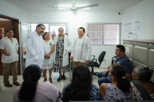 Acompañaron al Gobernador en esta supervisión el jefe de la Jurisdicción Sanitaria No. 1, Oliver García Trujillo; la directora del Centro de Salud de Dzityá, Sandra González Torres; y la comisaria ejidal, Suemi Pech Chi.