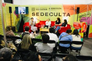 Una jirafa y una medusa se pasearon ayer en el stand 126 de la Secretaría de la Cultura y las Artes de Yucatán (Sedeculta), en el marco de la Feria Internacional de la Lectura Yucatán (Filey), con la presentación de los libros “Mi jirafa y yo” y “Medusa Reina”, entre otras actividades que convocaron a públicos diversos en torno a la palabra, la imaginación y la memoria.