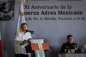 Joaquín Díaz Mena presidió la conmemoración del CXI aniversario de la Fuerza Aérea Mexicana, realizada en la Base Aérea Militar número 8, donde reconoció la labor, el profesionalismo y la coordinación de esta institución en favor de la seguridad, la paz y la atención a emergencias en Yucatán y en el país.