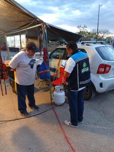 La seguridad es otro de los ejes principales de las acciones municipales. Todos los días se revisa que los tanques de gas utilizados en puestos de comida se encuentren en óptimas condiciones y que no excedan los 10 kilogramos permitidos. Asimismo, se supervisa que los establecimientos cuenten con extintores funcionales y con sellos de verificación emitidos por la autoridad competente.