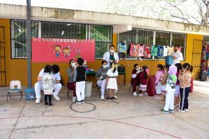 Asimismo, se distribuyó material educativo en español y lengua maya, donado por la Fundación de la Asociación Dental Mexicana (ADM).
