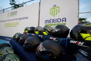 Para que más personas que utilizan motocicleta como fuente de trabajo estén más seguros y regresen con bien a casa, la presidenta municipal de Mérida, Cecilia Patrón Laviada, realizó la segunda entrega del año de cascos gratuitos con certificación DOT en la que fueron beneficiados 185 meridanas y meridanos.