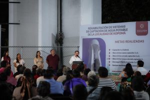 En la cabecera municipal, el mandatario explicó que Kopomá es un municipio pequeño, por lo que sus recursos son limitados, y que el Gobierno que encabeza participa de manera subsidiaria para mejorar estos sistemas como parte de acciones prioritarias para el bienestar de las y los habitantes.