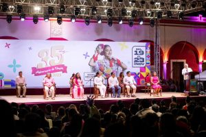 La velada incluyó presentaciones de la Casa de la Cultura, que llevó al escenario cuadros dancísticos regionales que celebraron la riqueza yucateca, además del baile popular con Ricky Thyam, que puso a las familias a disfrutar en una noche llena de energía festiva.