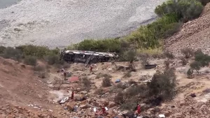 Autobús de pasajeros cae a barranco en Perú; hay al menos 37 muertos