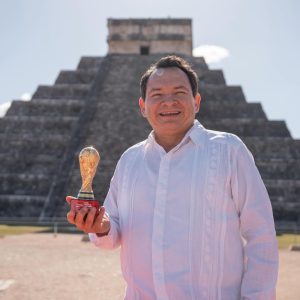 Con el Templo de Kukulcán como escenario, en la zona arqueológica de Chichén Itzá, el Gobernador develó el trofeo junto con la leyenda de la FIFA y campeón del mundo con la selección de España en 2010, Fernando Llorente, en una ceremonia que calificó como un hecho histórico para Yucatán, al recibir en el corazón del mundo maya a uno de los emblemas más universales del deporte.